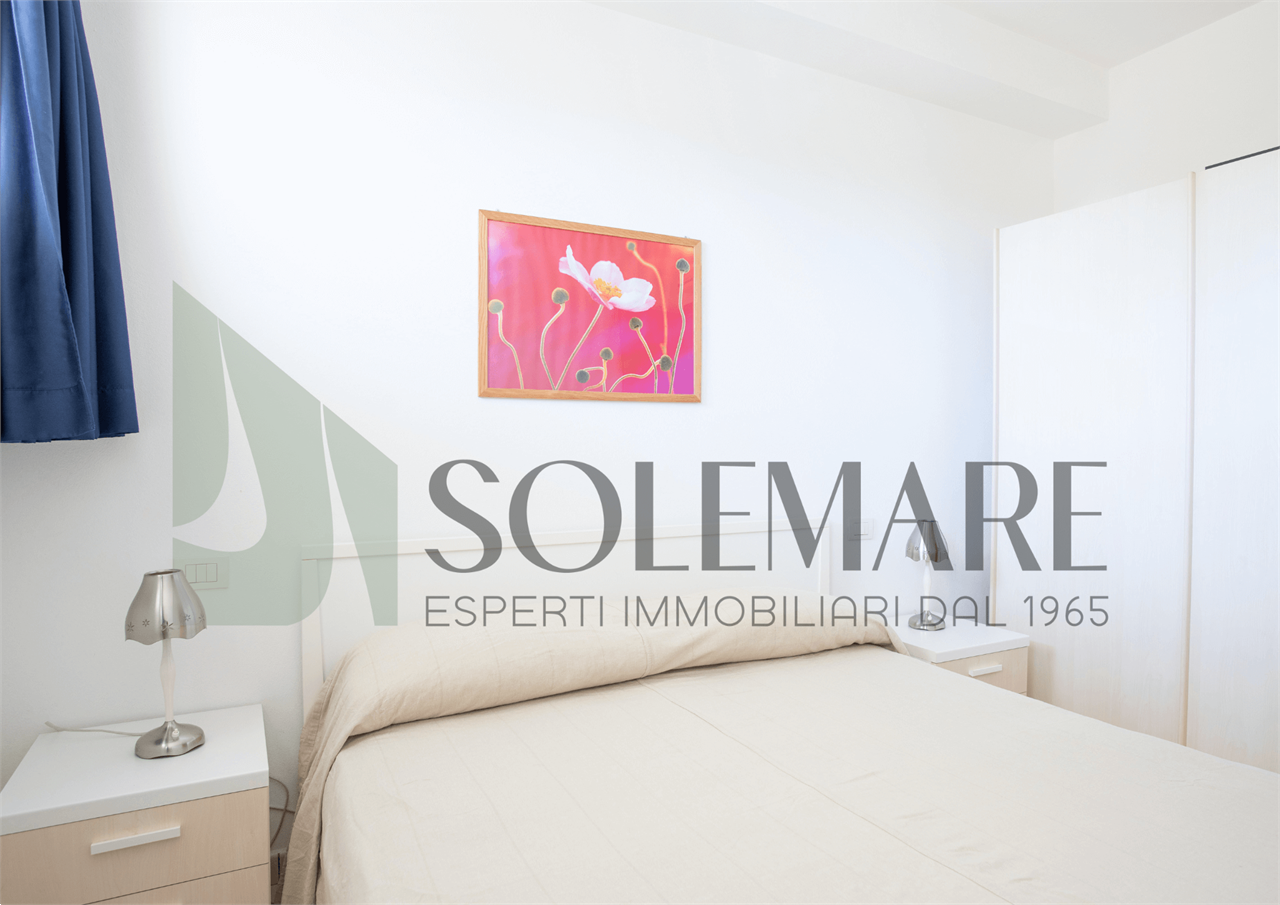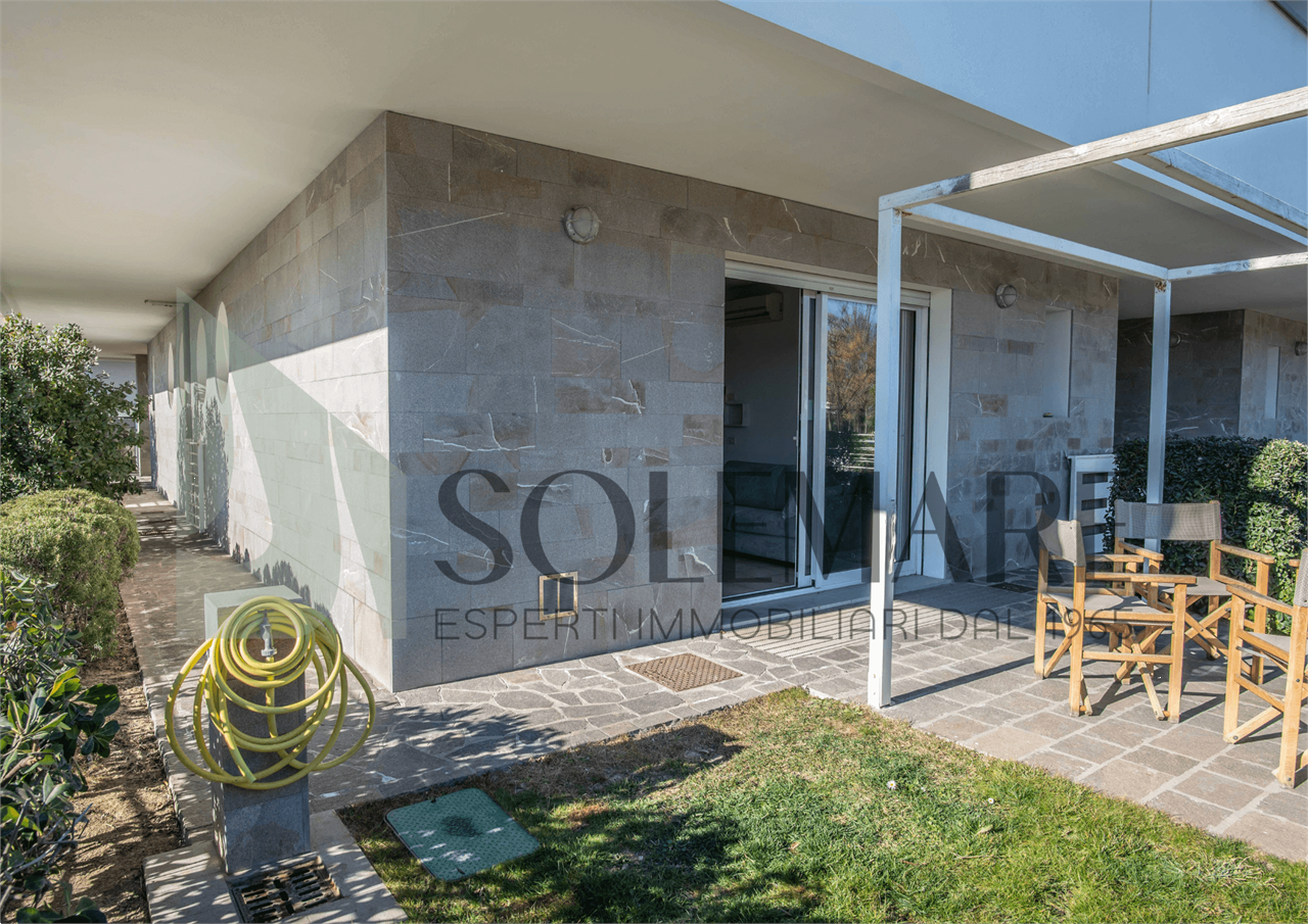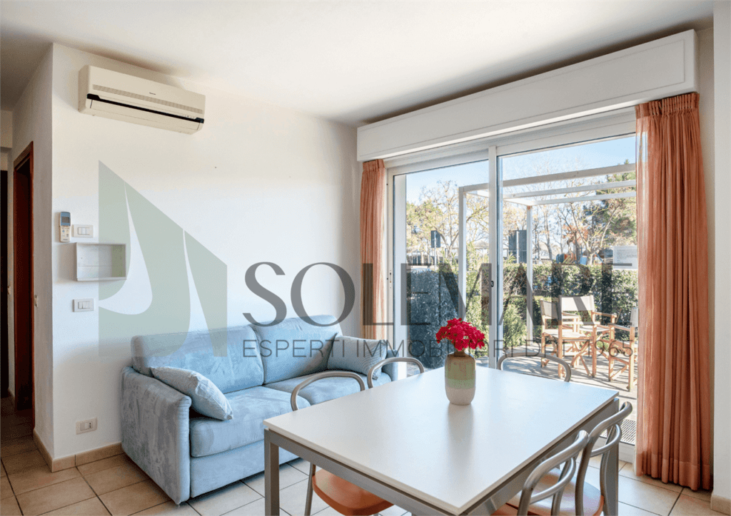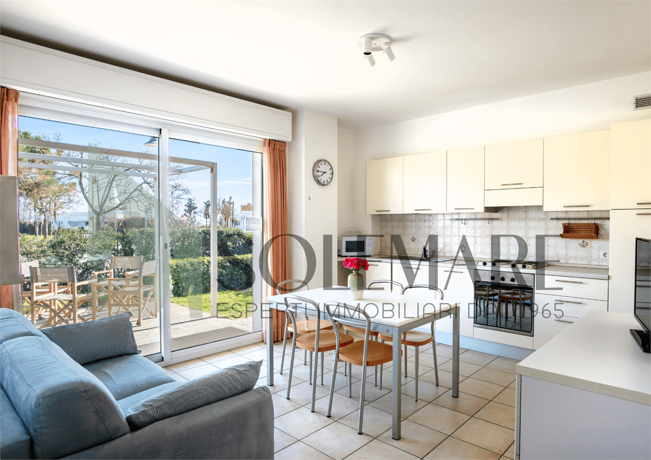 Bilocale situato a 30 mt dal mare, al piano terra, con giardino privato attrezzato, e 1 posto auto nel giardino comune.