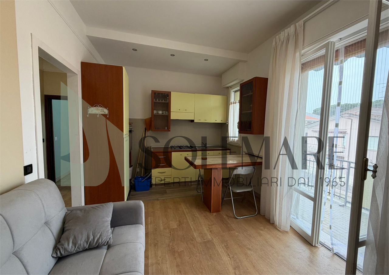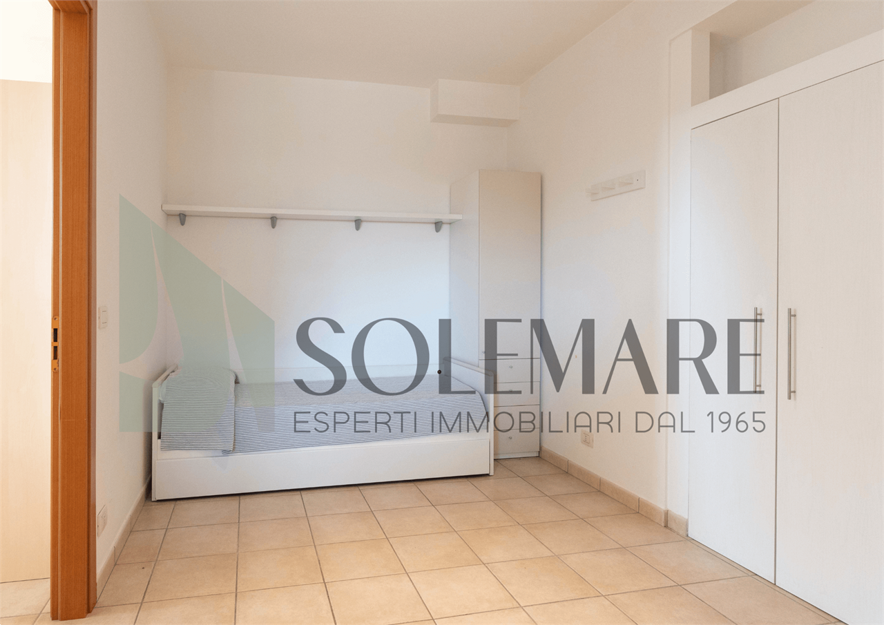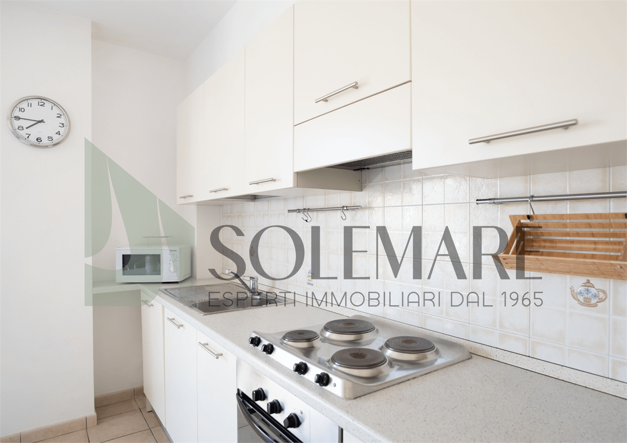 Bilocale situato a 30 mt dal mare, al piano terra, con giardino privato attrezzato, e 1 posto auto nel giardino comune.