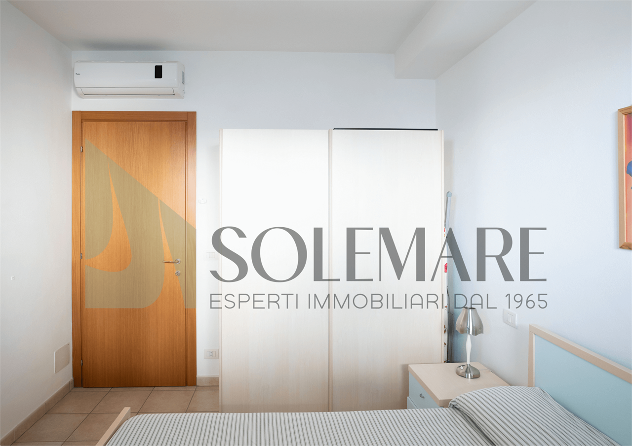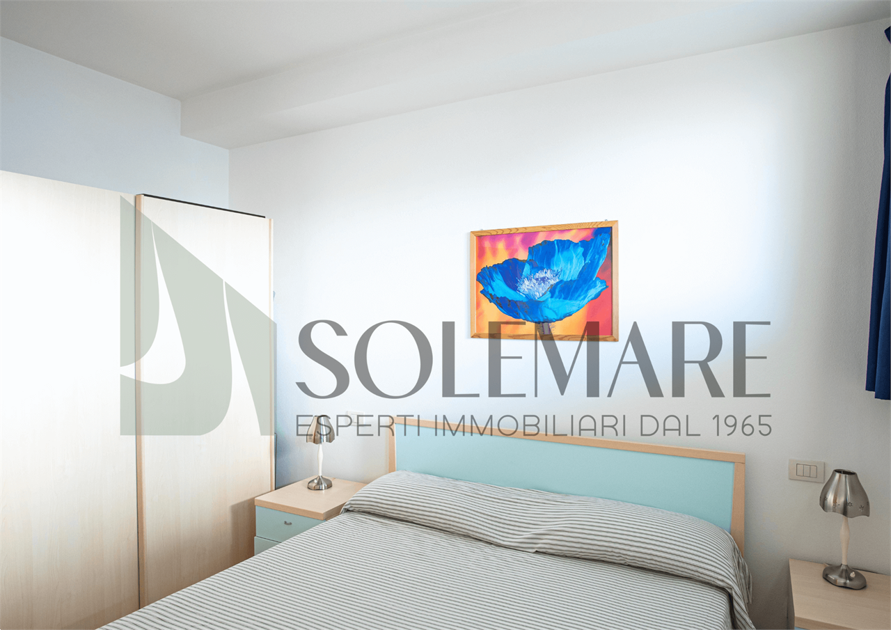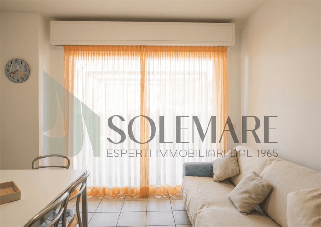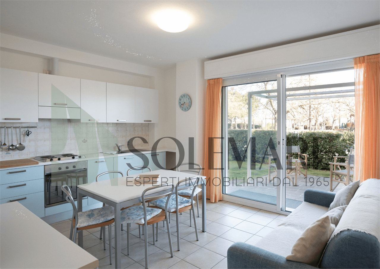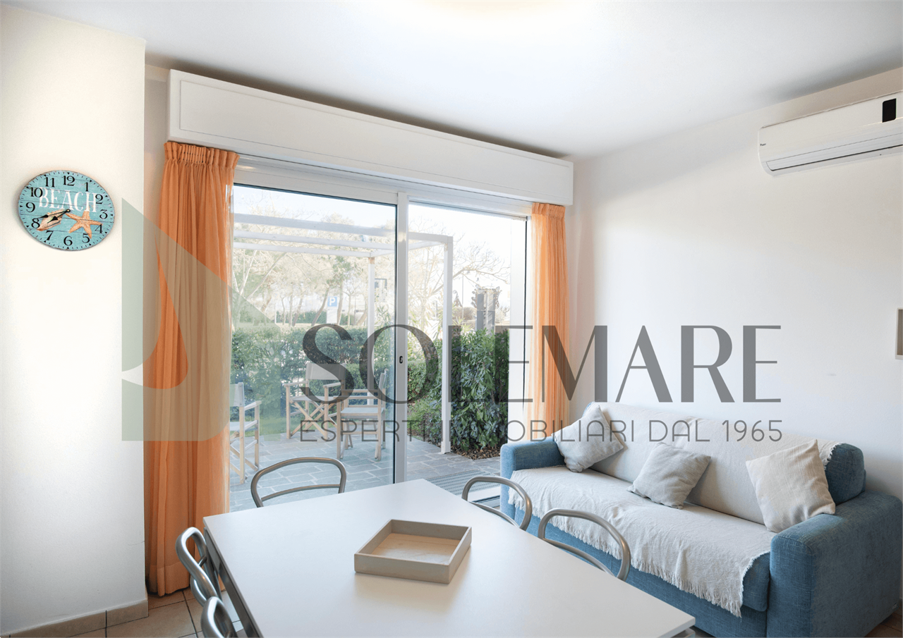Bilocale situato a 30 mt dal mare, al piano terra, con giardino privato attrezzato, e 1 posto auto nel giardino comune.