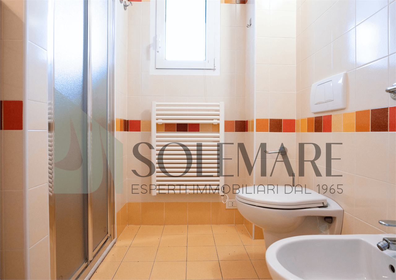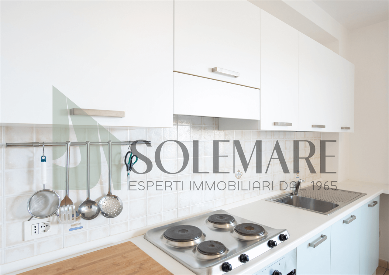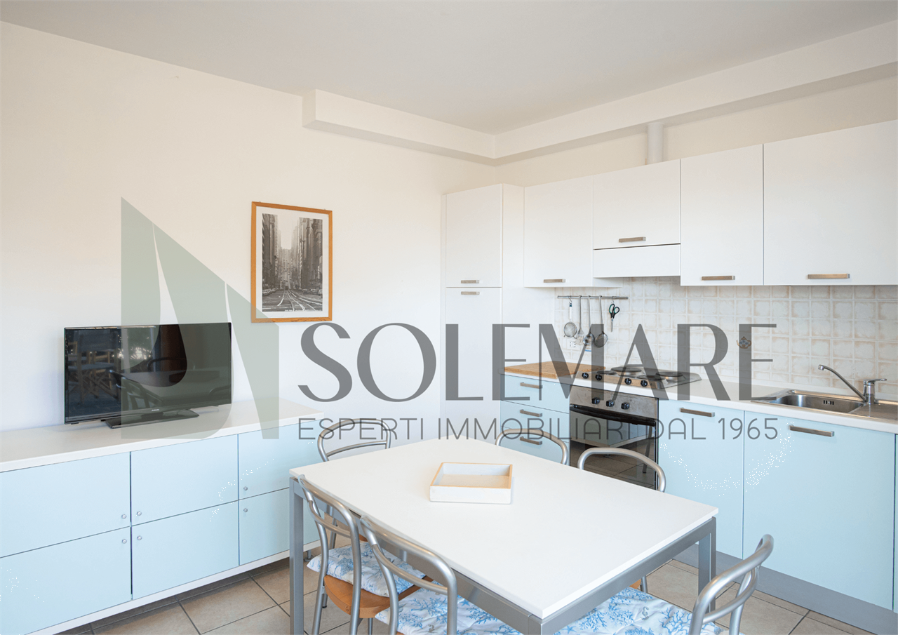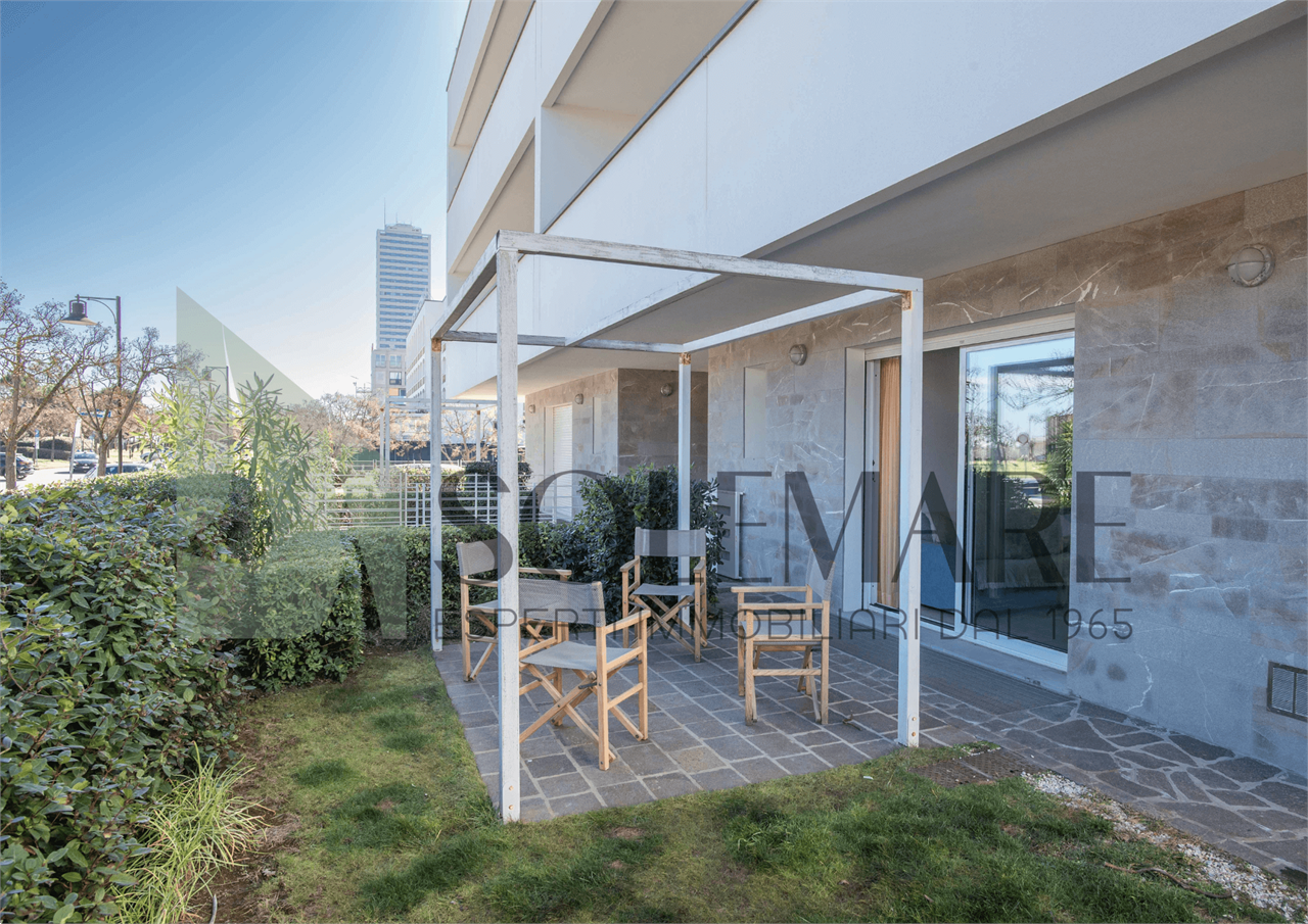Bilocale situato a 30 mt dal mare, al piano terra, con giardino privato attrezzato, e 1 posto auto nel giardino comune.