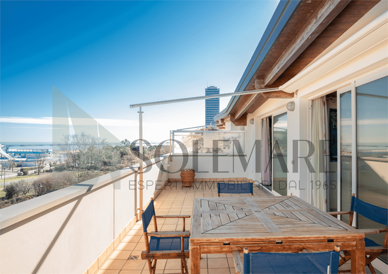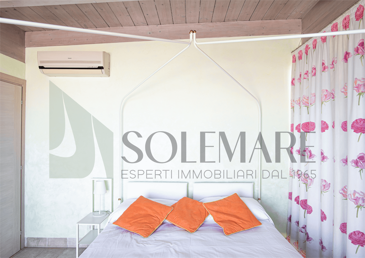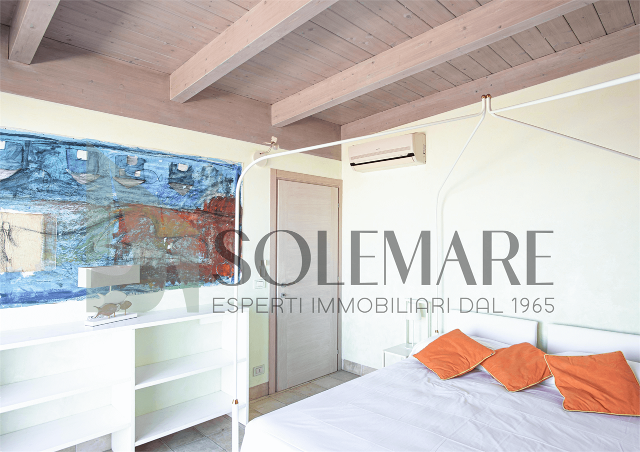 Formato da sala da pranzo con angolo cottura, 1 camera matrimoniale + rete apribile, 1 bagno con box doccia. Balcone in attico di mq 50 attrezzato con splendida vista mare.