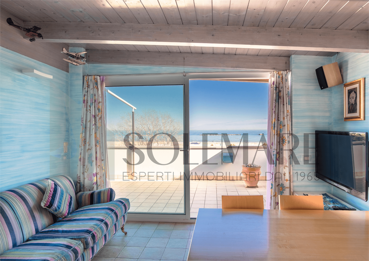 Attico bilocale, 30 mt dal mare, situato al 3^ piano con ascensore. 1 p.auto in garage (2,75mt x 5,93mt ).