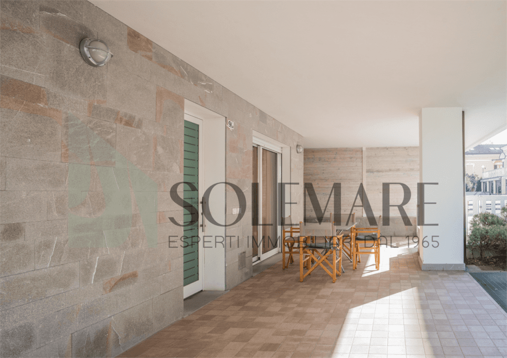 Bilocale situato al piano terra, 30 mt dal mare, 1 posto auto nel giardino comune, spazio esterno privato, attrezzato.