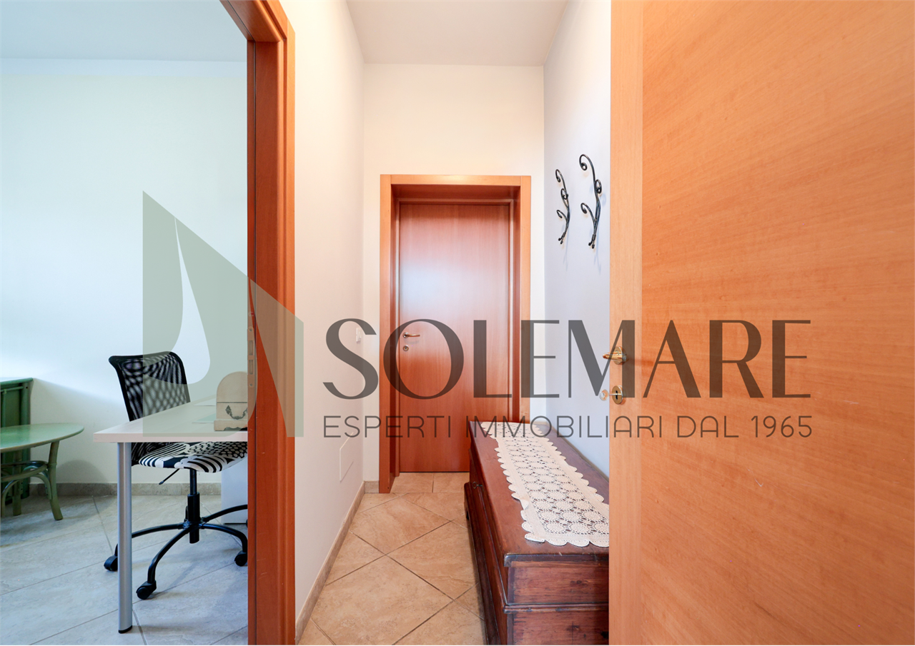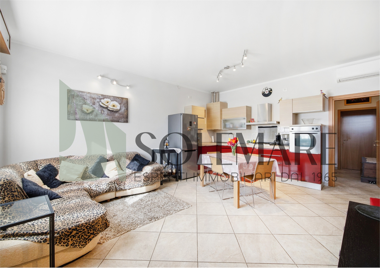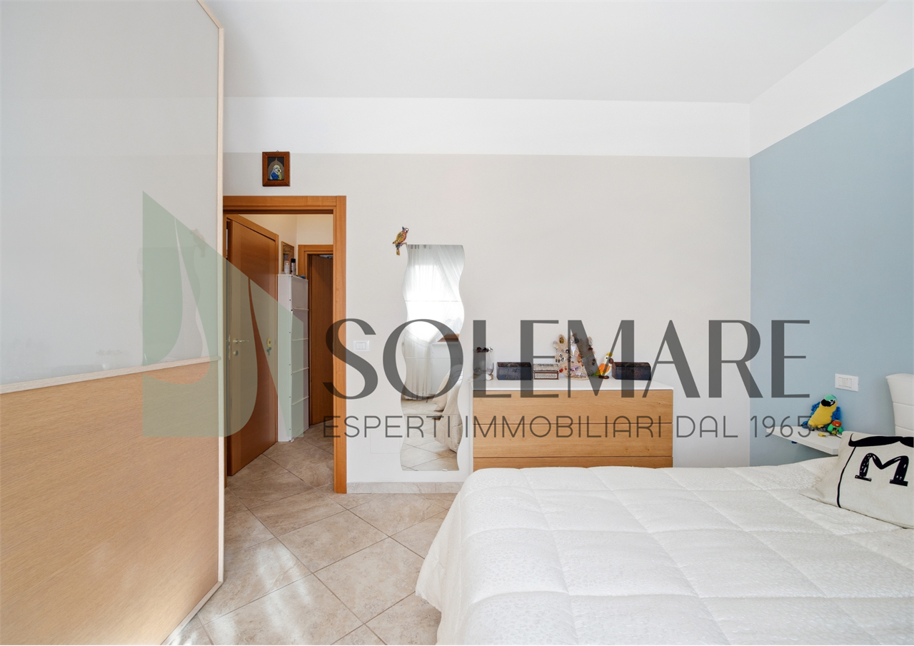 Interno: L’appartamento è composto da ampio soggiorno con cucina in ambiente unico, bagno con box doccia, camera da letto matrimoniale, camera da letto doppia e dispensa di 8 mq che può essere utilizzata come terza camera da letto.