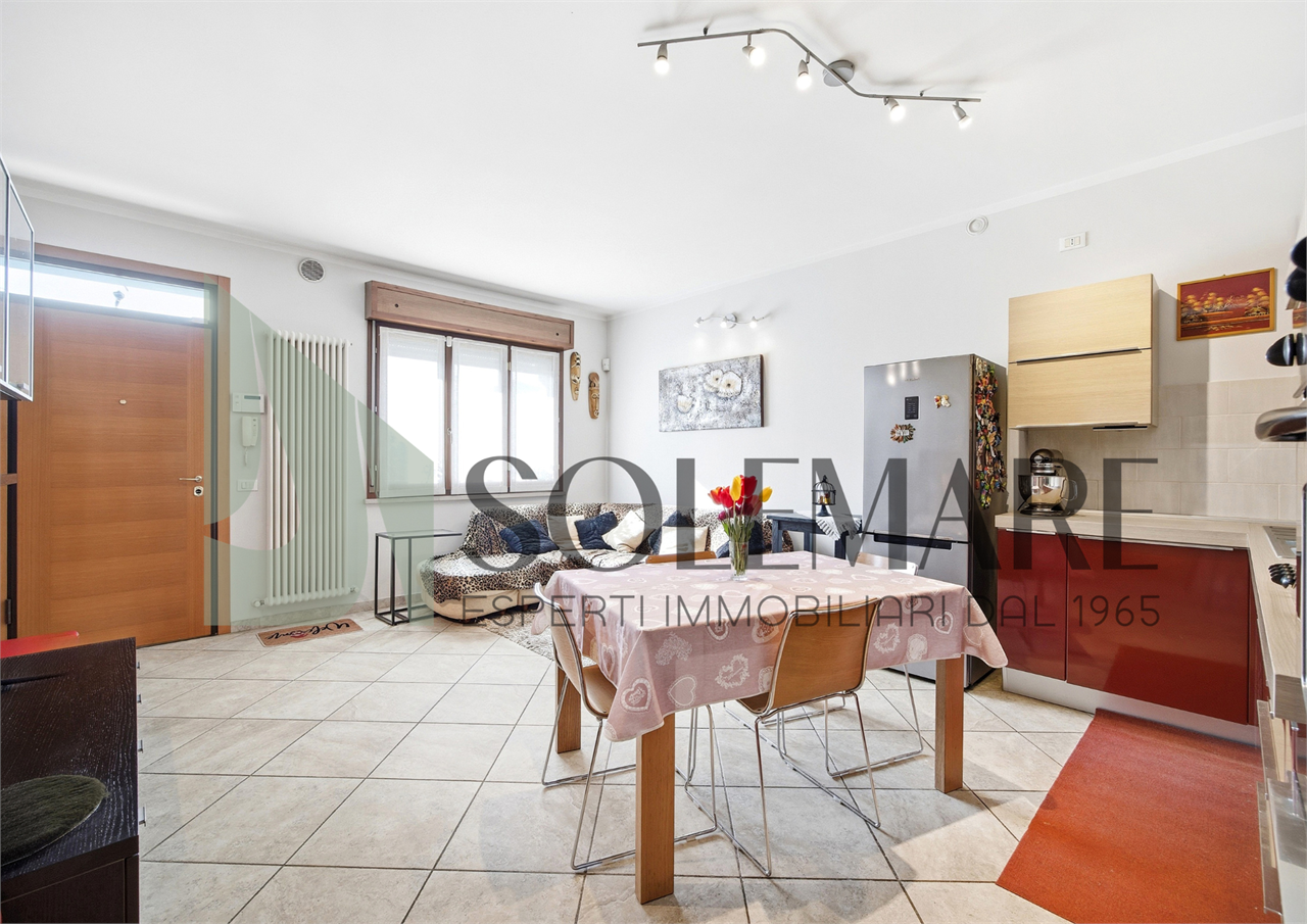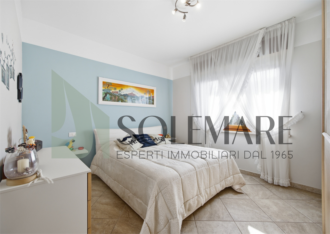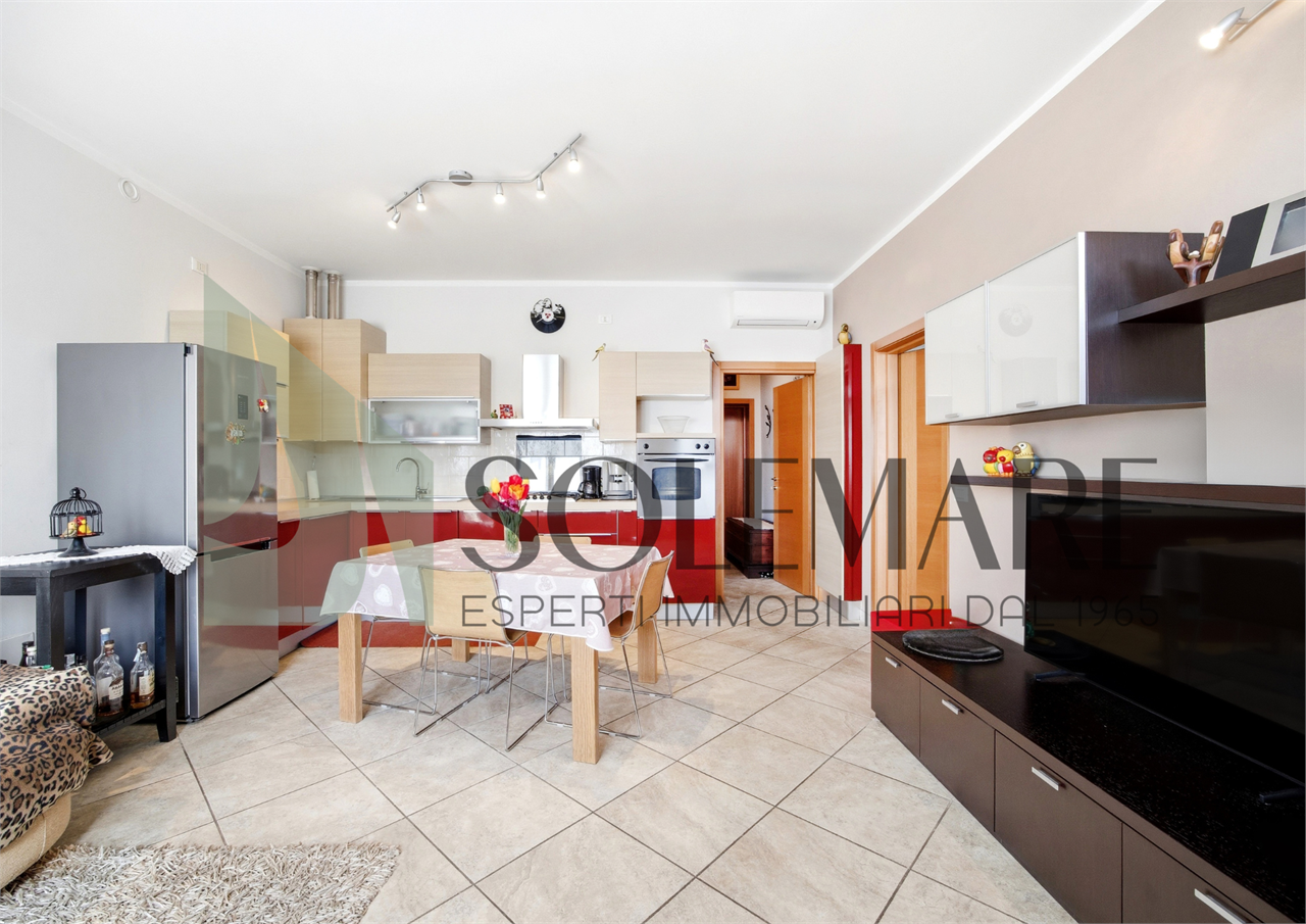 Interno: L’appartamento è composto da ampio soggiorno con cucina in ambiente unico, bagno con box doccia, camera da letto matrimoniale, camera da letto doppia e dispensa di 8 mq che può essere utilizzata come terza camera da letto.