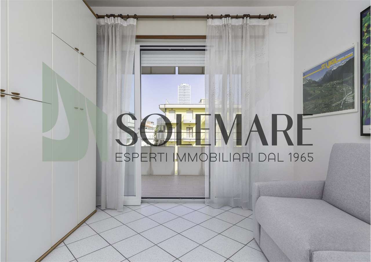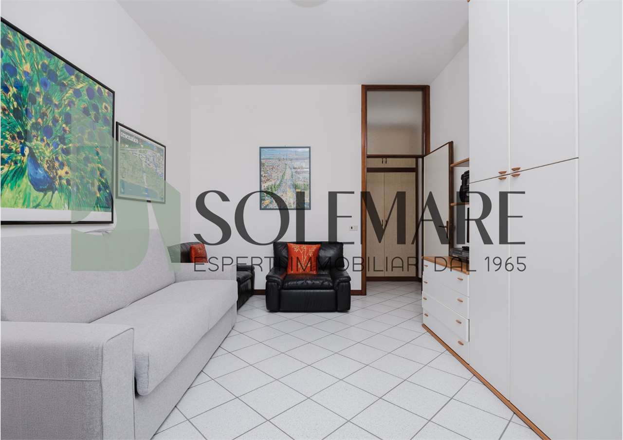 L’immobile è composto da soggiorno con sala da pranzo, cucinotto, due camere da letto matrimoniali, camera da letto doppia, due bagni di cui uno con box doccia, balcone e terrazzo di oltre 30 mq.