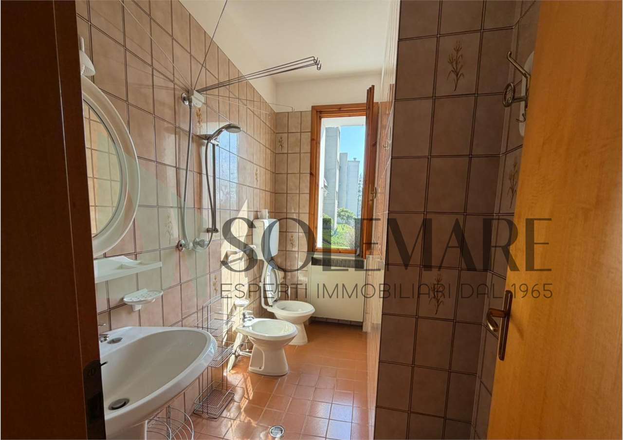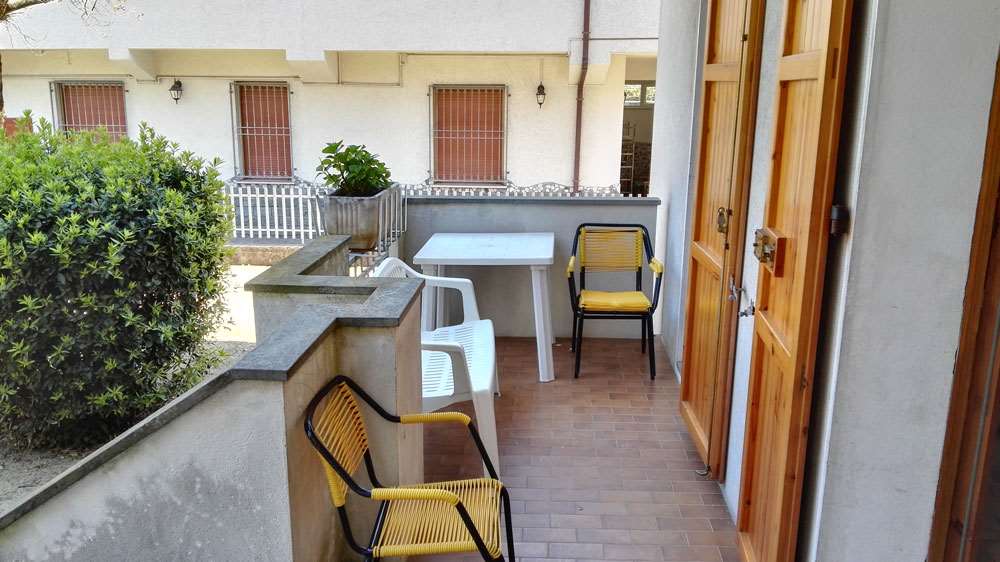 Appartmento quadrilocale, al piano terra, con ampio giardino e posti auto a disposizione. Sito a 250 mt dal mare, composto da 1 camera matrimoniale e 2 camere singole, soggiorno, cucinotto e 2 bagni con box doccia.