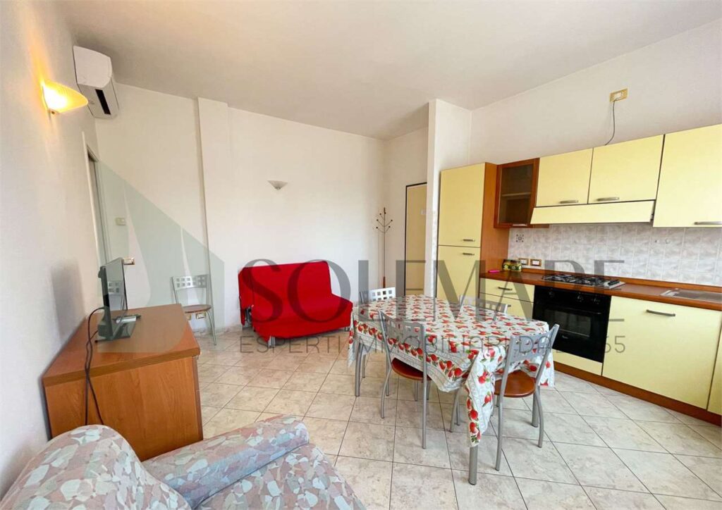 Formato da sala da pranzo con angolo cottura, con poltrona letto, 1 camera matrimoniale e 1 camera doppia, 1 bagno cieco con lavanderia e 1 bagno con box doccia, 2 balconcini. aria condizionata.