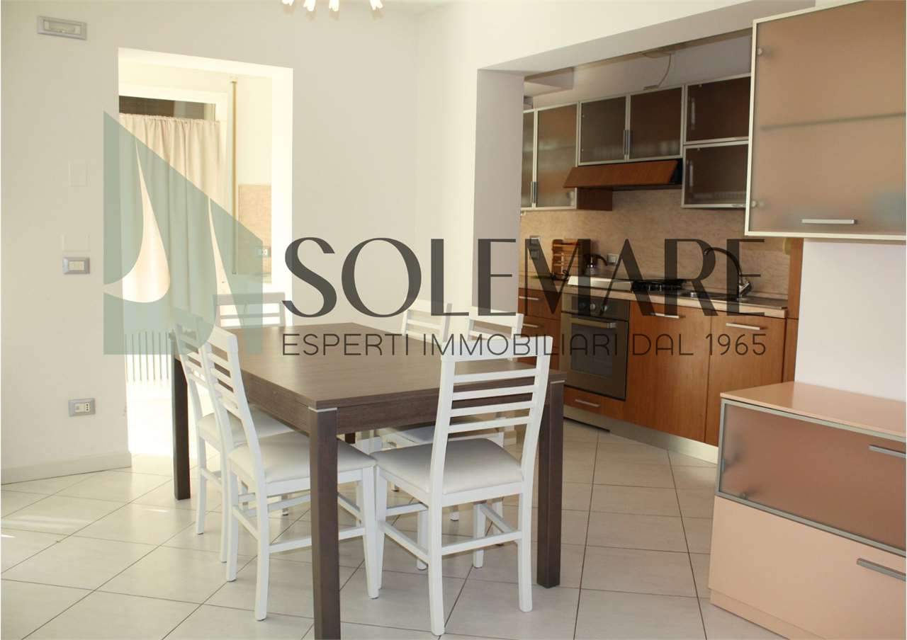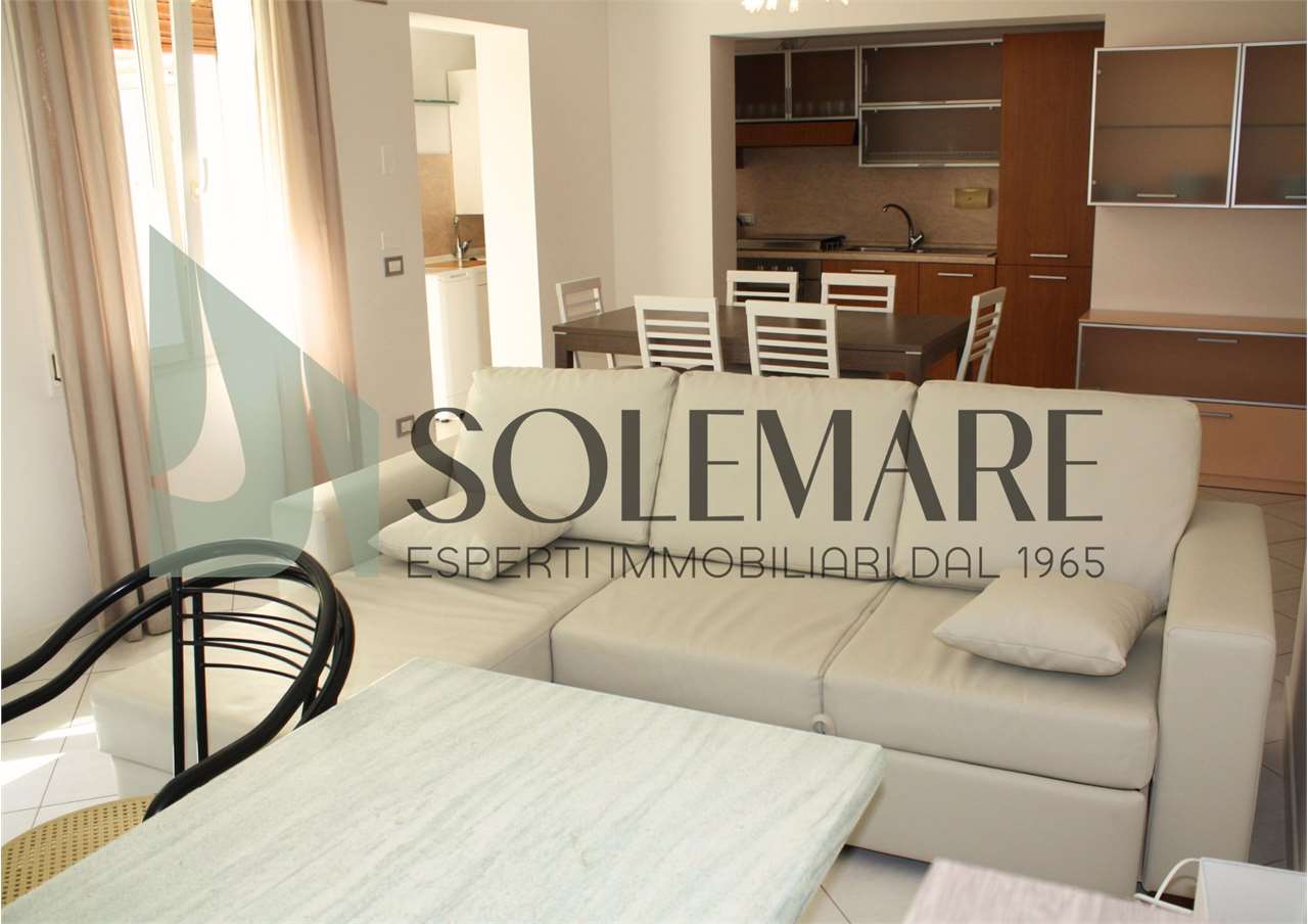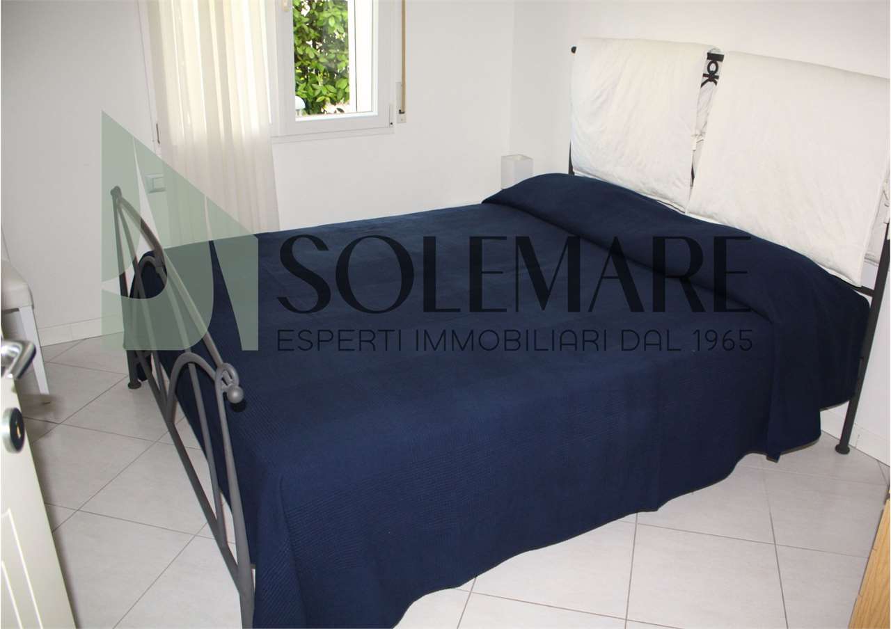 Quadrilocale situato a 600 mt dal mare, al piano terra di una casa con giardino e posto auto interno. Formata da 3 camere matrimoniali, 1 bagno con box doccia e 1 bagno con vasca, sala da pranzo con divano letto e angolo cottura.