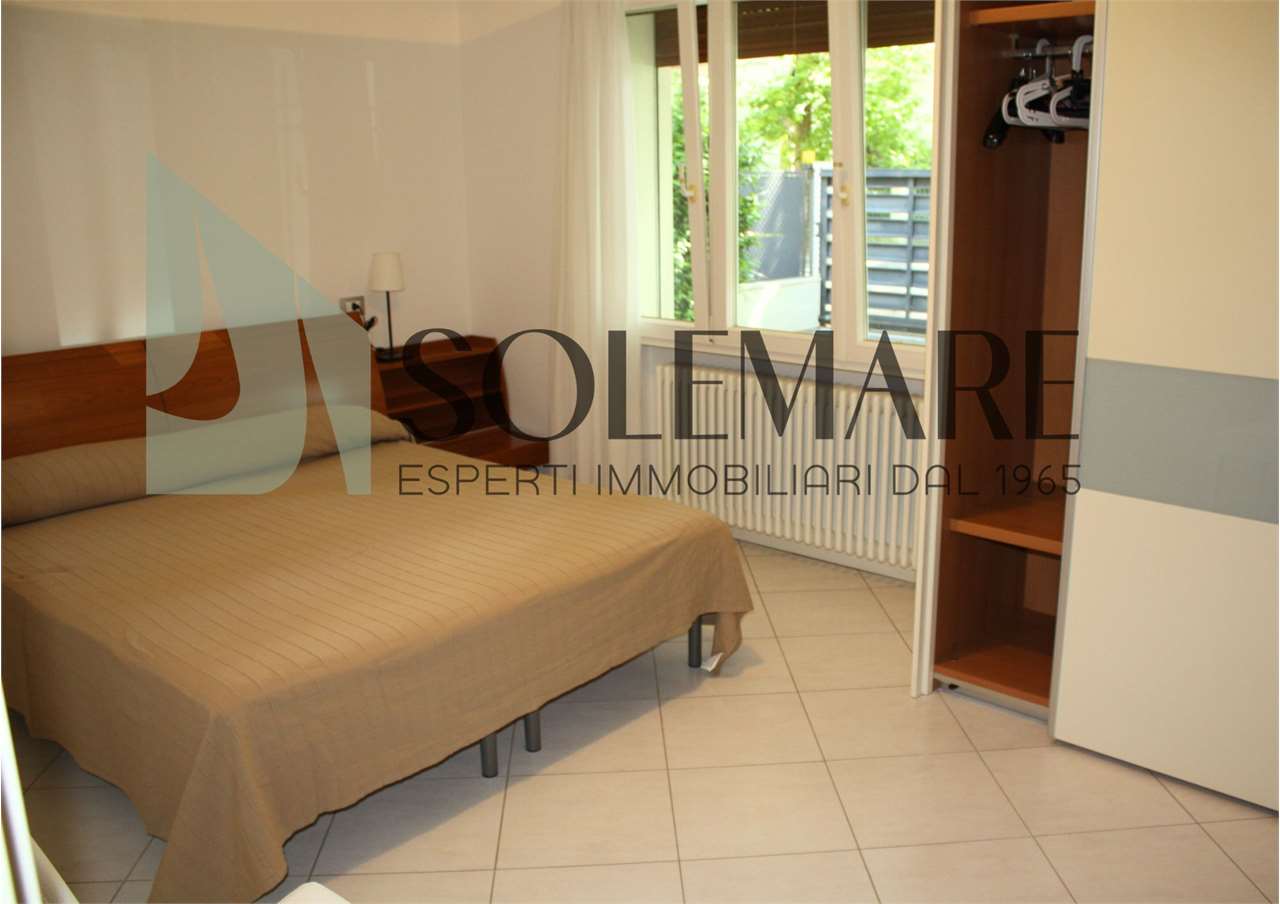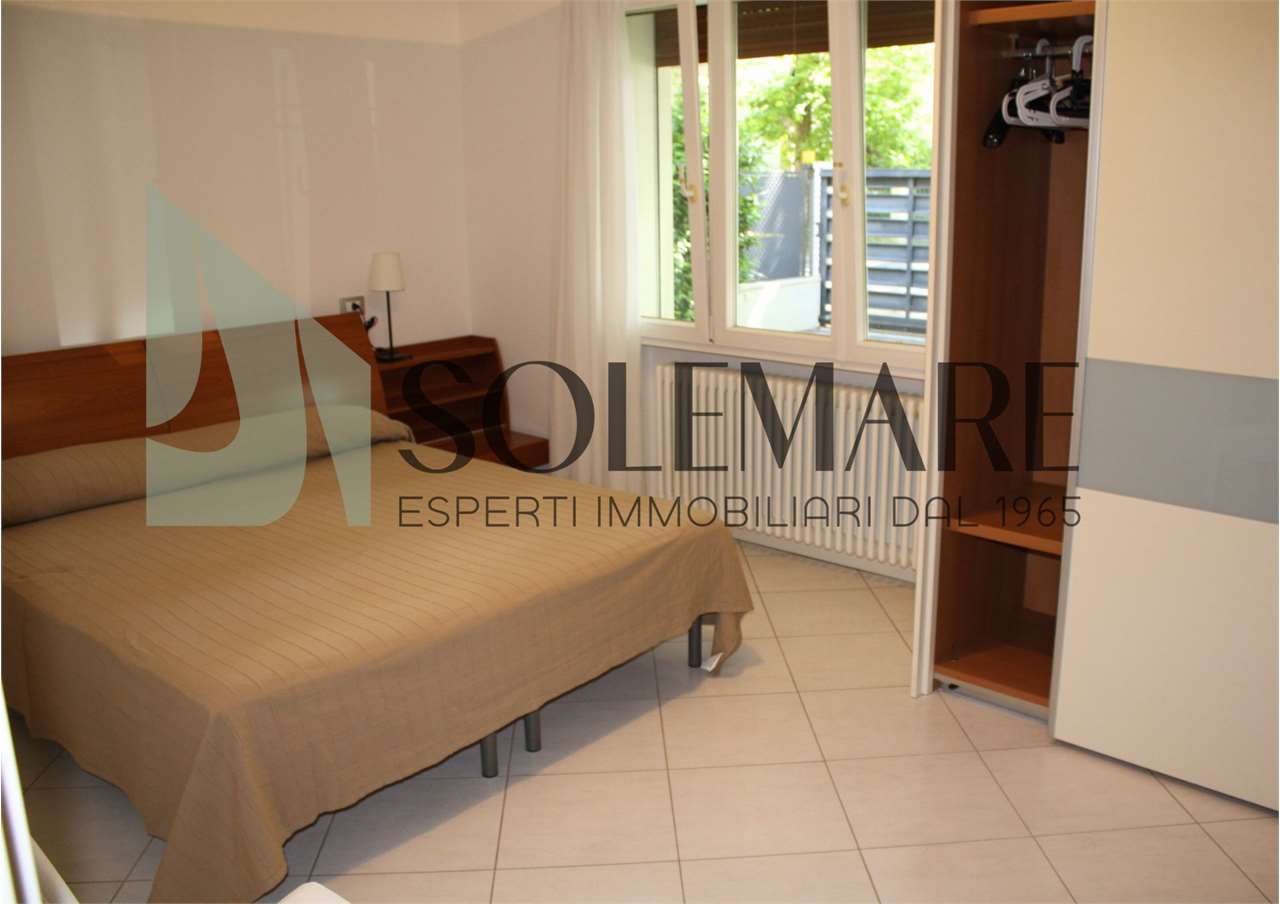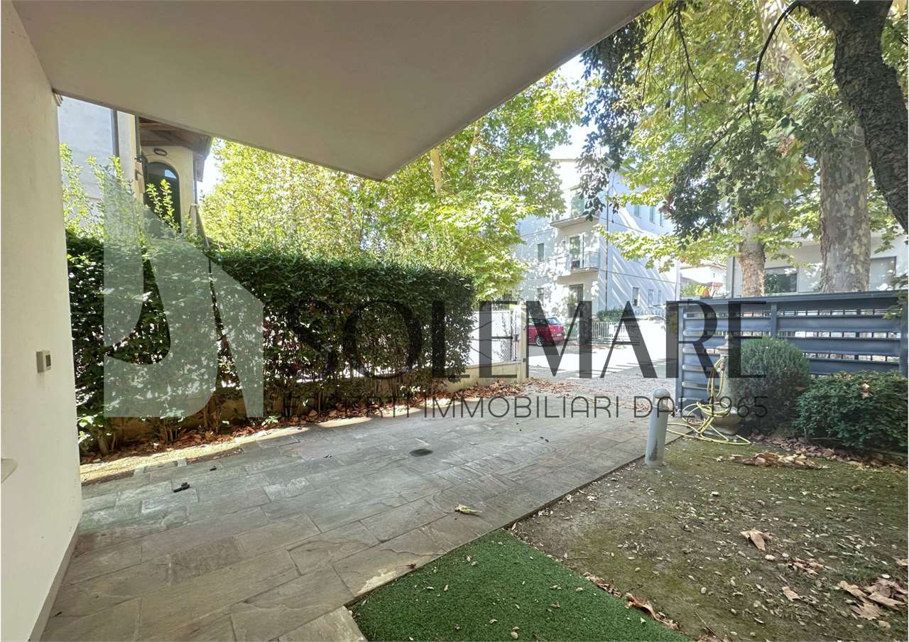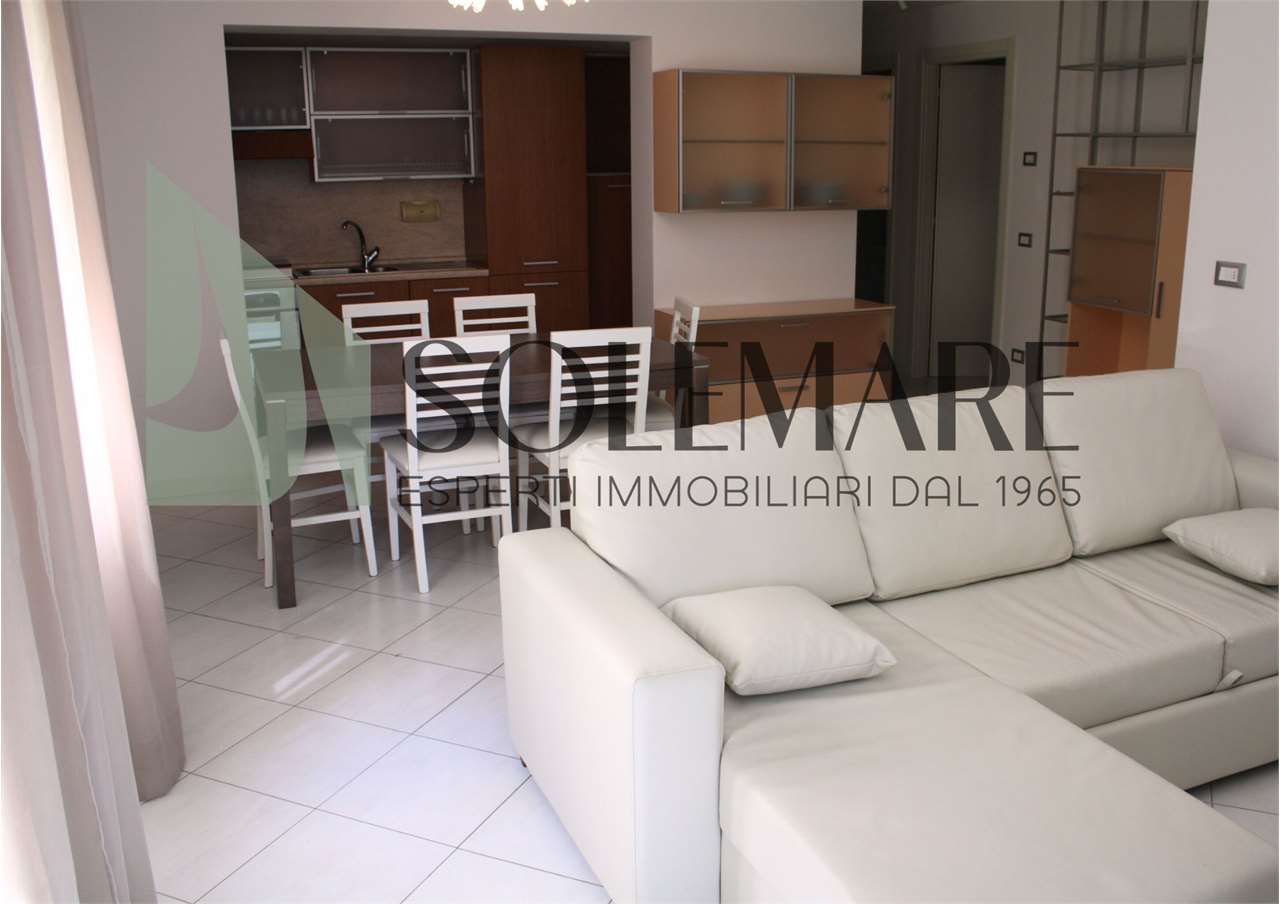 Quadrilocale situato a 600 mt dal mare, al piano terra di una casa con giardino e posto auto interno. Formata da 3 camere matrimoniali, 1 bagno con box doccia e 1 bagno con vasca, sala da pranzo con divano letto e angolo cottura.