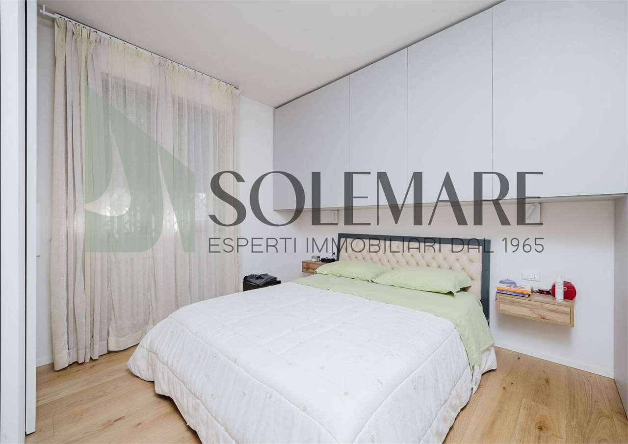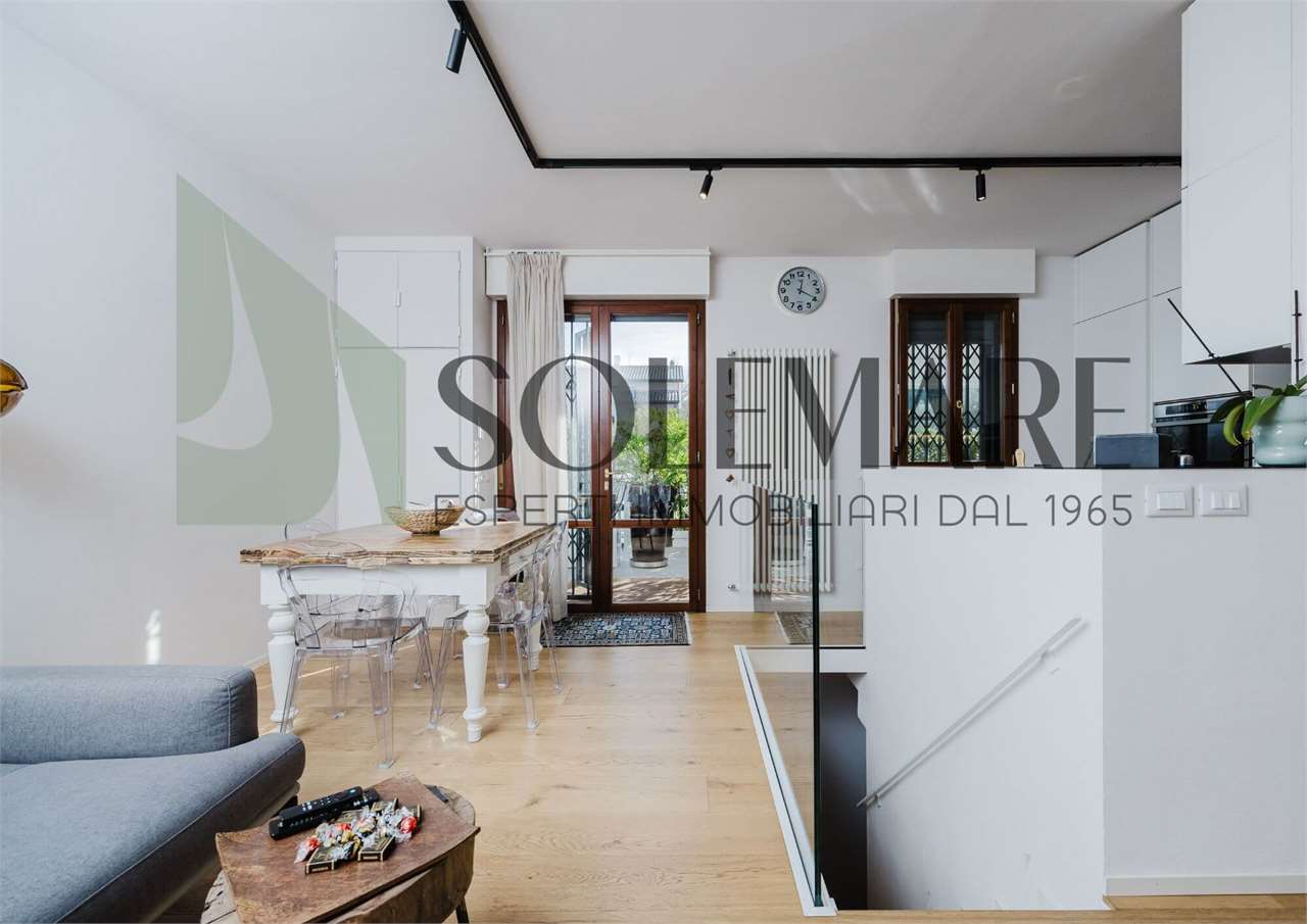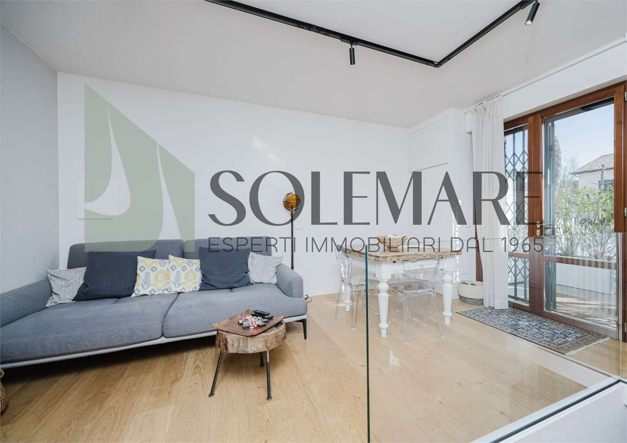 La soluzione è situata al piano terra, entrando veniamo accolti nella luminosa zona giorno con cucina a vista e tramite ampia porta finestra raggiungiamo il giardino dotato di veranda e POSTO AUTO. Nello stesso piano si trova la camera matrimoniale e un bagno con box doccia.