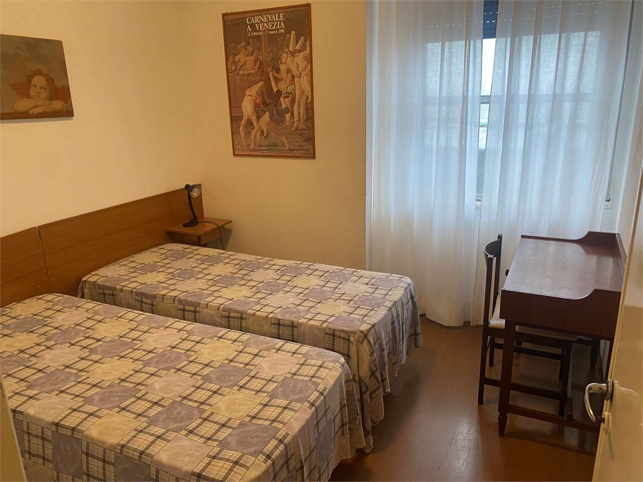 soggiorno pranzo con cucinotto, 3 camere matrimoniali di cui una con 3° letto, 1 bagno con ampio box doccia, tv, lavatrice.