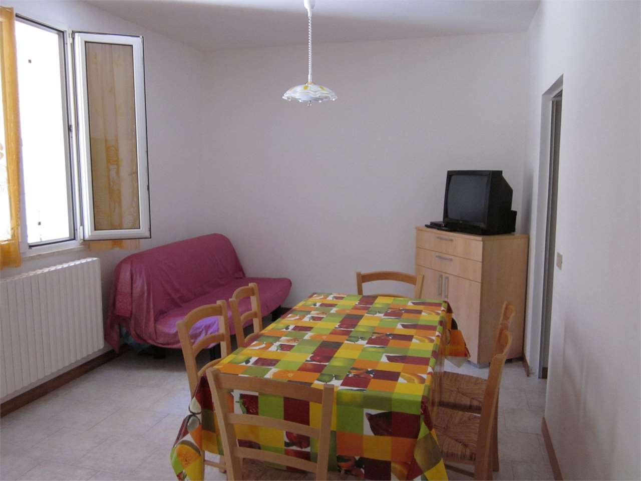 Formato da sala da pranzo con cucinotto (divano non letto), bagno con box doccia (foto da aggiornare) , 2 camere matrimoniali, con terzo letto.