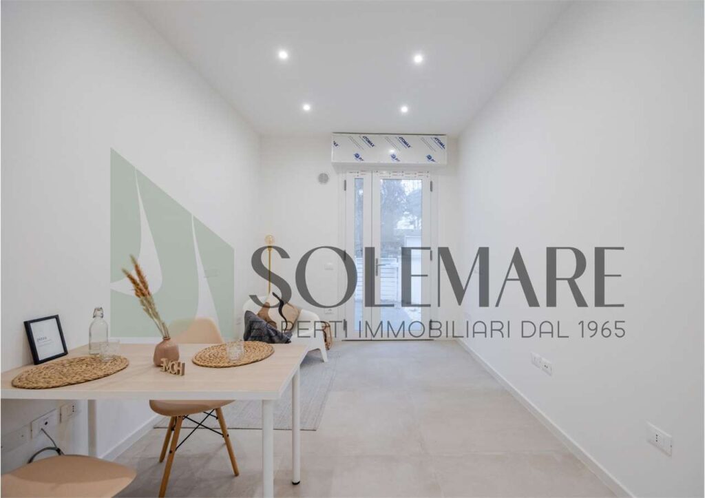 Si propone in palazzina di 4 unità di nuova ristrutturazione un appartamento trilocale situato al piano terra con ingresso indipendente, composto da soggiorno con angolo cottura, disimpegno, 1 camera matrimoniale, 1 camera singola e 1 bagno. Accesso diretto su giardino privato dal soggiorno. A completare la soluzione n. 1 box auto fuori terra e 1 posto auto in corte privata.
